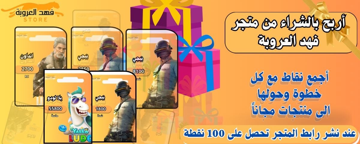 كل ريال تنفقه يحسب لك نقطة واحدة •مشاركة رابط المتجر تعطيك 100 نقطة •تقييمك للمتجر يكافئك 70 نقطة •النقاط قابلة للتحويل إلى هدايا مثل: بطاقات شحن مجانية, خصومات حصرية