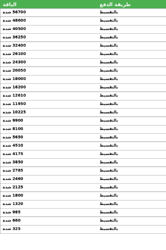 بطائق او باقات شحن شدات ببجي المتوفرة في متجر فهد العروبة في الجدول التالي نوضح لك الباقات المتوفرة في متجرنا مع توضيح ان طريقة الدفع بالتقسيط